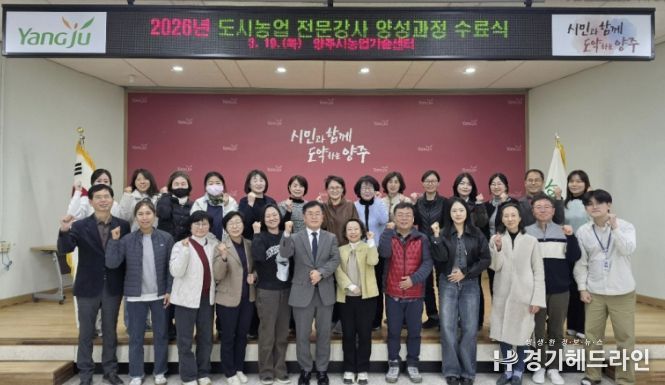 [경기헤드라인=김윤종 기자] 양주시가 지난 19일 양주시농업기술센터 대회의실에서 ‘2026년 도시농업 전문강사 양성과정’ 수료식을 개최했다.