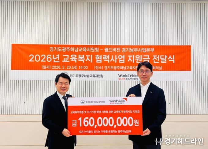 [경기헤드라인=정현수 기자] 경기도광주하남교육지원청은 3월 20일 광주하남교육지원청에서 월드비전 경기남부지역본부(본부장 최성호)와 함께 교육취약계층 학생 지원을 위한 지원금 전달식을 개최했다.