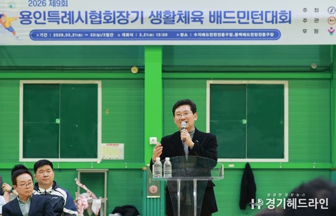 [경기헤드라인=문수철 기자] 이상일 용인특례시장은 21일 이틀간 수지·동백 배드민턴전용구장에서 열리는 ‘2026년 제9회 용인특례시 협회장기 생활체육 배드민턴대회’에 참석해 대회 참가자들을 격려했다.