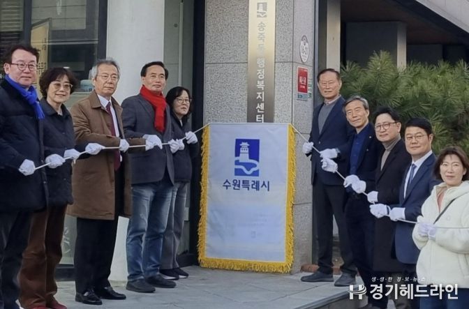 [경기헤드라인=문수철 기자] 수원시 장안구 송죽동은 지난 19일, 송죽동 행정복지센터 입구에서 주민 중심의 마을 교육 네트워크인 '2026년 동 평생학습센터'의 공식 출범을 알리는 현판 제막식을 개최했다.