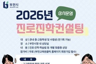 [경기헤드라인=문수철 기자] 부천시는 관내 중고등학생과 수험생의 자기주도적 진로 설계 역량을 강화하고 급변하는 입시 환경에 선제적으로 대응하기 위해 4월부터 ‘2026년 진로진학컨설팅’을 상시 운영한다.