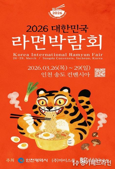 [경기헤드라인=문수철 기자] 인천광역시는 오는 2026년 3월 26일부터 29일까지 4일간 송도컨벤시아에서 ‘2026 대한민국 라면박람회’를 개최한다고 밝혔다.
