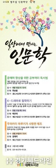 [경기헤드라인=김홍량 기자] 고양특례시 대화도서관의 대표 인문학 프로그램인 ‘열두달 인문학당’이 오는 4월부터 ‘일상에서 만나는 인문학’이라는 주제로 진행된다.