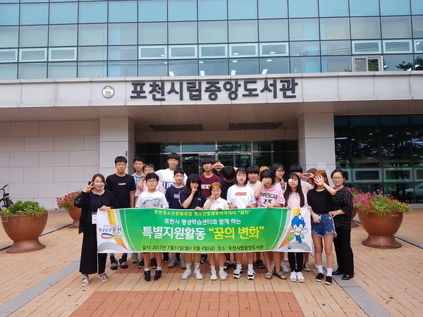 참여 청소년들은 “이번 특별지원활동 ‘꿈의 변화’를 통해 접하기 힘든 직업을 체험할 수 있어서 좋았다”며 포천시립중앙도서관에서 실시된 이번 특별지원활동을 매우 만족스러워 했다.