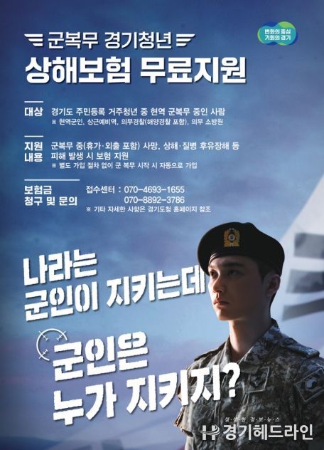 [경기헤드라인=문수철 기자] 경기도가 군복무 중 발생할 수 있는 사고로부터 청년을 보호하기 위해 ‘군복무 경기청년 상해보험’ 지원 사업을 올해도 이어간다.