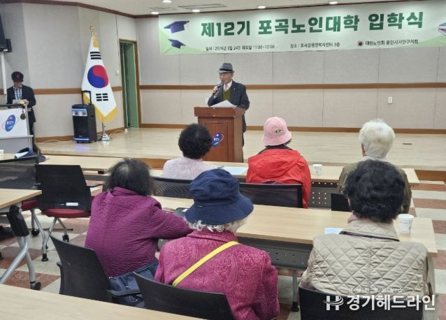 [경기헤드라인=문수철 기자] 용인특례시는 24일 처인구 포곡읍행정복지센터 대회의실에서 ‘포곡노인대학 제12기 입학식’이 열렸다고 25일 밝혔다.