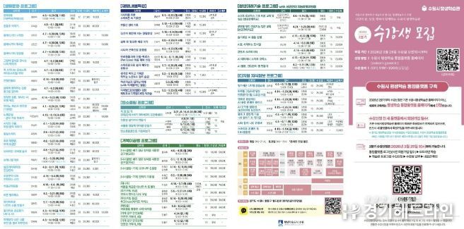 [경기헤드라인=문수철 기자] 수원특례시는 3월 25일 오전 10시부터 수원시 평생학습관 2026년 2분기 프로그램 수강생을 모집한다.