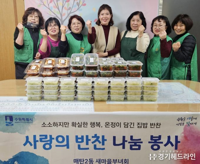 이날 매탄2동 새마을부녀회는 열무김치, 두부조림, 무나물 등 신선하고 다양한 반찬들을 손수 만들어 지역사회 소외계층 30세대에 전달했다.