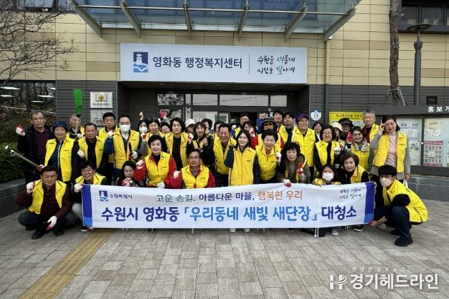 [경기헤드라인=문수철 기자] 수원시 장안구 영화동은 지난 24일, 쾌적한 마을환경 조성을 위한 ‘우리동네 새빛 새단장 일제 대청소’를 실시했다.