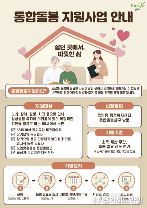 [경기헤드라인=김윤종 기자] 양주시가 오는 3월 27일 ‘돌봄통합지원법’의 전국 시행에 맞춰 양주형 통합돌봄 모델인 ‘온(溫)케어’ 서비스를 본격적으로 운영한다.