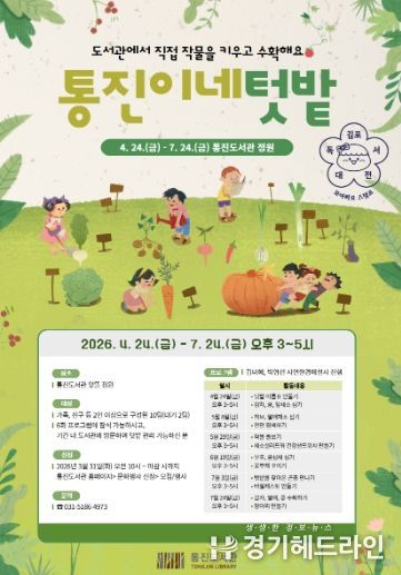 [경기헤드라인=문수철 기자] 김포시 통진도서관은 도서관에서 직접 작물을 키우고 수확하며 생태 감수성을 키우는 체험형 프로그램 ‘통진이네 텃밭’을 오는 4월 24일부터 7월 24일까지 운영한다.