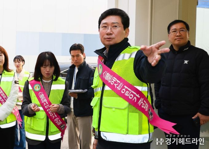이 시장은 통학로 점검 후 교통지도 봉사 현장에서 녹색어머니회와 학부모회 회원들을 격려하고, 학교 후문 횡단보도에서 학생들이 안전하게 길을 건널 수 있도록 교통지도 봉사를 했다.