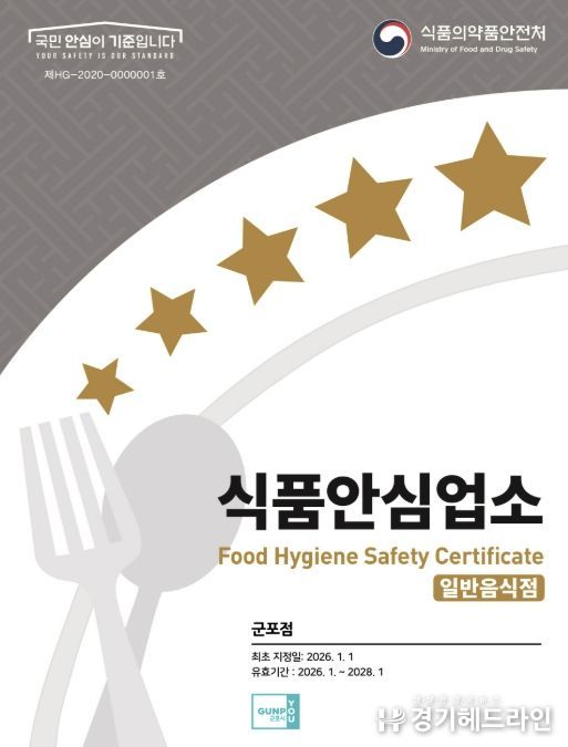 [경기헤드라인=문수철 기자] 군포시는 식품안심업소(음식점위생등급 지정업소, 이하 지정업소) 재지정 평가에 대한 영업자 부담을 줄이고 재지정률을 높이고자 이달부터 지정업소 청소비 지원 사업을 추진한다.