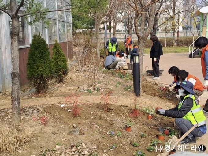 이번 행사는 주민자치회 ‘반딧불마을분과’에서 주관하고 금정동 경기행복마을관리소와 통장협의회가 힘을 보태 공원 내 유휴 부지에 다양한 초화류와 관목을 심어 아름다운 마을 정원을 조성하기 위해 마련됐다.