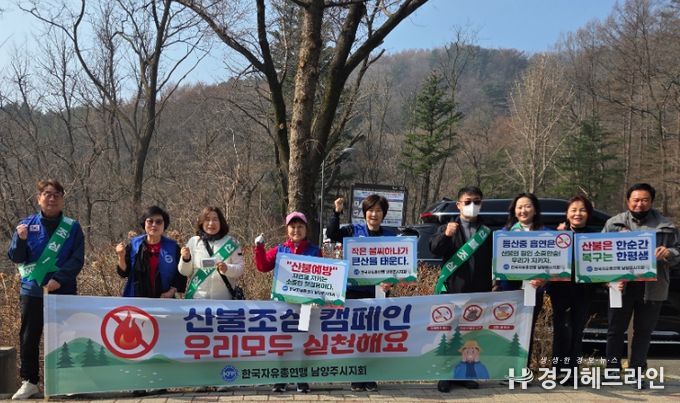 이날 캠페인에는 한국자유총연맹 남양주시지회 회원 10명이 참여해 주요 등산로 입구와 탐방로 일대에서 산불 예방 홍보 활동을 펼쳤다.