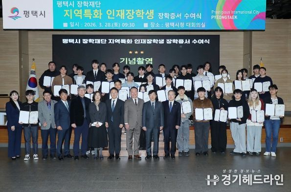[경기헤드라인=문수철 기자] 평택시 장학재단은 지난 3월 28일 평택시청 대회의실에서 '2026년도 지역특화 인재 장학생 장학증서 수여식'을 개최했다.