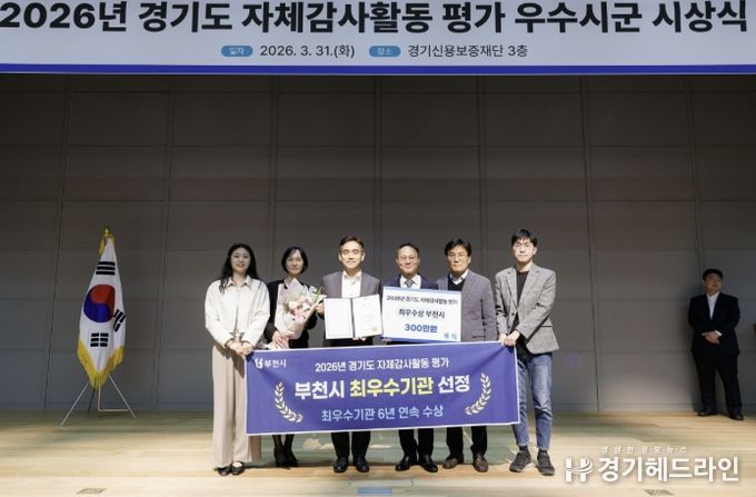 [경기헤드라인=문수철 기자] 부천시는 2026년 경기도 자체감사활동 평가에서 ‘최우수기관’으로 선정돼 2021년부터 6년 연속 최우수기관에 이름을 올렸다.