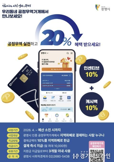 최혜민 광명시장 권한대행(부시장)은 “공정무역과 지역화폐를 연계한 이 사업은 시민 참여 속에서 실질적인 성과를 확인한 정책”이라며 “앞으로도 시민이 일상에서 사회적 가치를 실천할 수 있도록 다양한 정책을 지속 추진하겠다”고 밝혔다.