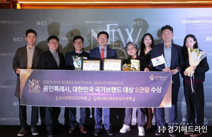 [경기헤드라인=문수철 기자] 용인특례시가 칸 국제광고제, 클리오광고제와 함께 세계 3대 광고제로 꼽히는 뉴욕페스티벌(NYF)이 주관하는 ‘2026 뉴욕페스티벌 대한민국-국가브랜드 대상’(NYF K-NBA)에서 도시브랜드(CI) 부문과 반도체산업 선도 도시 부문 1위로 선정됐다.