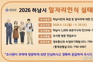 [경기헤드라인=정현수 기자] 하남시는 오는 4월 13일부터 29일까지 17일간 ‘2026 하남시 일자리 인식 실태조사’를 실시한다고 밝혔다.