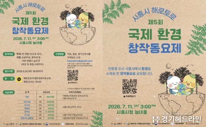 [경기헤드라인=문수철 기자] 시흥시는 기후위기 시대를 맞아 동요로 환경의 가치를 전하고 친환경도시 시흥을 알리는 ‘제5회 시흥시 해로토로 국제 환경창작동요제’ 공모를 시작했다.
