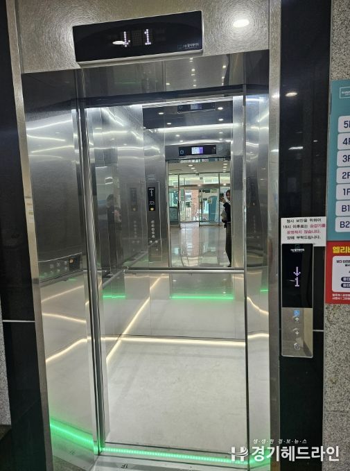 [경기헤드라인=문수철 기자] 군포시 금정동주민센터가 2003년에 설치되어 20년 넘게 사용된 노후 승강기를 철거하고 12인승 규모의 신형 승강기로 교체하는 공사를 성공적으로 완료했다.