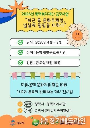 평택시와 평택복지재단은 지역 내 장애인 및 가족의 삶의 질 향상을 위한 다양한 복지사업을 지속적으로 지원하고 있으며, 이번 공모사업을 통해 현장 중심의 우수 프로그램을 발굴·확산하는 데 기여하고 있다.