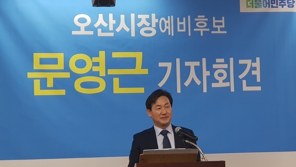 12일 문영근 오산시장 예비후보는 오산시의회에서 기자회견을 열고 곽상욱 오산시장의 예비후보등록에 대한 부당성을 알리며 스스로 무능을 인정한 “곽상욱 시장에게 더 이상 오산을 맡길 수 없다”고 잘라 말했다.