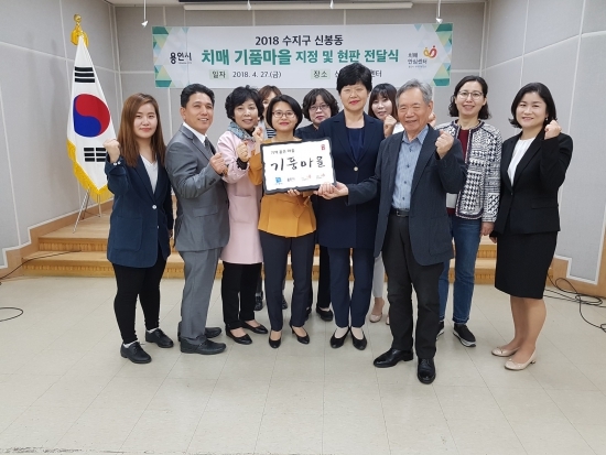 이와 관련해 수지구보건소 치매안심센터는 27일 신봉동주민센터, 신봉동 5개 단체와 치매 기품마을 현판 전달식을 가졌다.