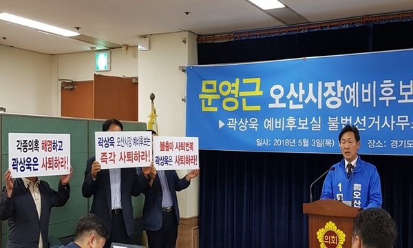 이날 문 예비후보는 "오산시선관위는 2일 오후 곽 후보측의 유사 선거사무소로 의심되는 한 빌딩을 수색해 각종 증거자료를 확보한 것으로 알고 있다"고 말했다.