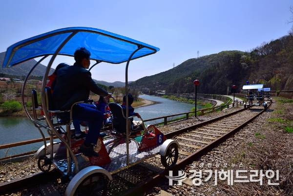 ▲ 양평 용문역에서 10분 거리에는 레일바이크를 탈 수 있는 곳이 있다. 용문에서 원덕까지 흑천을 따라 편도 3.2㎞의 철로를 시속 15~20㎞로 달린다.(사진=경기관광공사) 산과 개울이 어우러진 아름다운 풍경과 함께 시원한 강바람을 맞으며 페달을 밟으면, 가슴속까지 시원해지는 기분이 들 것이다. 2인승과 4인승 바이크가 있어 연인·가족끼리 즐거운 시간을 보낼 수 있다.