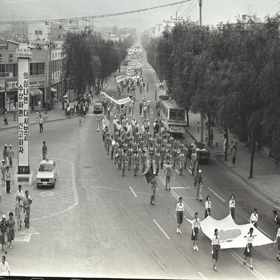 ▲ 1980년 7월 수원시민 반공안보 단합 궐기대회 가두행진 모습