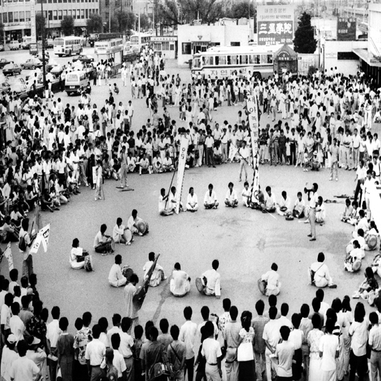 ▲ 1987년 6월 수원역 광장에 모인 시민들