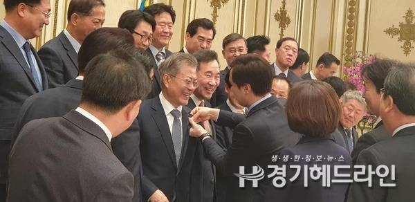 한편, 국정설명회가 끝난 직후 청와대 영빈관에서 문재인 대통령 주재로 오찬 간담회가 이어졌고, 서 시장은 기념촬영에 앞서 문재인 대통령에게 ‘화성시 3.1운동 100주년 기념 배지’를 직접 달아줘서 이목을 끌기도 했다.
