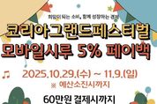 [경기헤드라인=문수철 기자] 시흥시는 오는 10월 29일부터 11월 9일까지 12일간 정부가 추진하는 ‘코리아 그랜드 페스티벌’에 참여해 시흥화폐 ‘시루’ 모바일결제 시 5%를 돌려주는 환급행사인 페이백을 진행한다. 이를 통해 시민들의 소비를 촉진하고 지역경제에 활력을 불어넣을 계획이다. ‘코리아 그랜드 페스티벌’은 ‘희망이 되는 소비, 함께 성장하는 경제’를 슬로건으로 내걸고, 가을소비 진작을 위해 범국가적으로 추진되는 대한민국 최대 규모의 할인 축제이자 국가통합 소비 활성화 프로젝트다. 행사 기간, 시흥시는 예산 소진 시까지 시흥화폐 60만 원 결제 한도 내에서 5% 페이백을 제공해 최대 3만 원까지 혜택받을 수 있도록 지원한다. 페이백 내역은 모바일 시루 앱에서 실시간으로 확인할 수 있다. 정호기 시흥시 경제국장은 “이번 페이백 행사를 통해 시흥화폐 시루의 활성화를 도모하고, 시민들이 즐겁게 지역 경제 활성화에 참여할 수 있는 계기가 되길 바란다”라고 말했다.