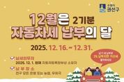 [경기헤드라인=문수철 기자] 권선구청이 올해 12월 정기분 자동차세(지방교육세 포함) 약 91,498건, 14,400백만 원을 부과했다. 자동차세 정기분은 매년 6월과 12월에 부과되며, 이번 12월 정기분 자동차세는 올해 12월 1일 기준으로 권선구에 등록된 자동차, 건설기계 및 이륜자동차가 대상이다. 자동차세 납부 기간은 오는 12월 16일부터 31일까지며, 기한 내에 납부하지 않으면 납부지연가산세가 붙게 된다. 자동차세는 전국 모든 금융기관 및 CD/ATM을 이용하거나 가상계좌번호, 지방세입계좌로도 납부할 수 있다. 또한 위택스 및 지로를 통한 인터넷·모바일 납부도 가능하며 실시간 ARS 납부 서비스를 통해 전화로 카드 납부도 가능하다. 권선구청 관계자는 “바쁜 연말이지만 시민들이 자동차세를 잊지 말고 꼭 납부했으면 좋겠다”라고 말했다.