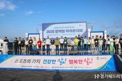 [경기헤드라인=문수철 기자] 평택시의회는 19일, 평택항 엠에스로지스틱 일원(평택시 포승읍 신영리)에서 개최된‘2025 평택항 마라톤대회’에 참석해 전국에서 모인 마라토너들의 열정을 응원했다. 이날 행사에는 강정구 평택시의회의장을 비롯한 시의원이 참석하고 평택시 체육회장, 평택시육상연맹 관계자 등 내외빈과 참가자 약 7,300여명이 함께했다. 이번 평택항 마라톤대회는 스트레칭으로 몸을 푼 뒤 하프코스(21.0975km)·10km,·5km 3개 부문으로 나눠 출발했다. 하프코스는 평택당진항 자유무역지역을 지나 평택항 서부두 내항방면을 거쳐 퓨리나 평택공장까지, 10km구간은 서부두 해안도로까지, 5km구간은 평택항 서부두 내항방면까지 각각 반환점으로 삼는 코스다. 강정구 의장은 “마라토너가 달리는 이유는 끝이 아닌 여정 그 자체에 있기에 중요한 것은 완주가 아니라 그 과정 속에서 자신을 발견하는 일”이라며, “평택시의회도 건강한 공동체 속에서 도전의 기쁨을 누릴 수 있도록 생활체육 기반을 튼튼히 다지는 데 최선을 다하겠다”라고 전했다. 한편 올해로 25회를 맞는‘2025 평택항 마라톤대회