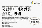 [경기헤드라인=김홍량 기자] 파주시 교하도서관은 오는 20일과 27일, 15시부터 17시까지 교하도서관 3층 소극장에서 전문 안내원(도슨트) 초청 강연 프로그램 ‘국립현대미술관을 즐기는 방법’을 운영한다. 이번 프로그램은 국립현대미술관 윤유미 전문 안내원(도슨트)을 초청해, 국립현대미술관 서울관·덕수궁관·과천관의 상설전시를 중심으로 한국 현대·근현대 미술의 흐름을 이해하고 미술관을 보다 깊이 있게 감상할 수 있는 방법을 안내하기 위해 마련됐다. 1차시 강연은 1월 20일에 진행되며, 국립현대미술관 서울관과 덕수궁관의 주요 전시를 중심으로 ‘한국현대미술의 하이라이트’전시를 다룬다. 2차시 강연은 1월 27일에 열리며, 과천관 상설전시인 ‘한국근현대미술 I·II’와 ‘야외조각공원’을 소개할 예정이다. 강연은 청소년부터 성인까지 총 30명을 대상으로 계획됐으나, 신청자가 많아 더 많은 시민이 참여할 수 있도록 장소를 3층 소극장으로 변경해 운영한다. 이재면 교하도서관장은 “이번 강연을 통해 시민들이 현대미술을 보다 친근하게 접하고, 미술관 관람의 즐거움이 한층 넓어지는 계기가 되길 바란다”라고 밝혔다.