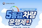 [경기헤드라인=김홍량 기자] 파주시는 제7차 계절관리제 기간인 2025년 12월부터 2026년 3월까지 배출가스 5등급 차량에 대한 단속을 실시하고 있다. 제7차 계절관리제 운행 제한은 고농도 미세먼지가 자주 발생하는 시기인 12월부터 3월까지(주말 및 공휴일 제외) 수도권과 6대 특별·광역시(부산, 대구, 광주, 울산, 세종)를 출입하는 전국 배출가스 5등급 차량을 대상으로 시행된다. 운행 제한을 위반할 경우 1일 10만 원의 과태료가 부과된다. 다만, 저감장치 부착이 불가능한 차량 중 기초생활수급자 및 차상위계층 소유 차량, 소상공인 등록 차량, 긴급자동차, 장애인 차량, 국가유공자 차량 등은 과태료 부과 대상에서 제외된다. 다만, 저감장치 장착 불가 차량 중 기초생활수급자, 차상위계층 및 소상공인 등록차량, 긴급자동차, 장애인, 국가유공자 차량 등은 부과 대상에서 제외된다. 파주시는 장곡 검문소에 설치된 단속카메라를 통해 운행 제한 위반 차량을 단속하고 있으며, 적발된 차량에 대해서는 관련 절차에 따라 과태료를 부과할 예정이다. 또한, 시는 5등급 차량의 저공해 조치를 위한 노후