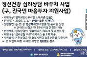 [경기헤드라인=문수철 기자] 평택시에서는 2025년 전국민 마음투자 지원사업의 효과성을 평가하고 서비스 질적 향상을 도모하기 위하여 서비스 이용 시민을 대상으로 만족도 조사를 진행했다. '전국민 마음투자 지원사업'은 우울·불안 등 정서적 어려움이 있는 시민에게 대화 기반의 심리상담 이용권(바우처) 서비스를 총 8회기 지원하는 국가 정신건강 지원사업이다. 평택시는 2025년 한해 965명의 시민이 심리상담 서비스를 이용했으며, 지난 1월 5일부터 18일까지 이용자 전원을 대상으로 익명으로 진행한 만족도 조사에서 269명의 이용자가 응답했고, 서비스 전문성과 만족도 분야 등 총 10개 문항에서 100점 만점에 평균 90.3의 높은 점수로 긍정적인 평가를 나타냈다. 특히 서비스 재이용 의사 여부를 묻는 문항에 91.8점으로 가장 높은 평가를 받았고, 타인에게 서비스 추천 여부 91.7점, 상담 결과 정신건강에 도움이 됐다는 90.6점으로 나타났다. 이용 소감으로는 “속마음을 털어놓으니 마음의 짐이 줄어든거 같다”, “불안이 사라지고, 안정감을 되찾았다”, “화를 다스리고 다른 사람들과 화합하는 방법을 깨