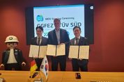 [경기헤드라인=문수철 기자] 경기경제자유구역청은 독일 시험·인증 전문기관인 독일 티유브이슈드 코리아(TÜV SÜD Korea)가 약 700억 원을 투자해 평택 포승BIX지구에 전기차 및 에너지저장장치(ESS) 관련 시험·인증 인프라를 구축한다고 28일 밝혔다. 김능식 경기경제자유구역청장은 현지시각 27일 오전 독일 뮌헨 티유브이슈드(TUV SUD) 본사에서 휘블 볼프강 회장 및 서정욱 한국대표와 투자협약을 체결했다. 티유브이슈드 코리아는 국제표준에 따른 시험분석 및 시험·인증서비스 핵심 기관으로, 포승BIX지구 산업시설 부지에 700억 원을 투입해 전기차 및 에너지저장장치(ESS) 관련 시험·인증시설을 조성한다. 올 하반기 착공에 들어가 2026년 완공해 시험·인증 서비스를 진행한다는 계획이다. 협약에 따라 경기경제청은 인증시설 건축에 필요한 각종 인·허가는 물론 준공 시까지 발생하는 고충 해결 지원을 약속했다. 티유브이슈드 코리아는 조속한 시험·인증시설 조성으로 지역경제 활성화에 기여하고 친환경적 시설 운영과 관리를 위해 노력하기로 했다. 이번 투자로 평택 포승BIX지구에는 신규고용 40명의 일자