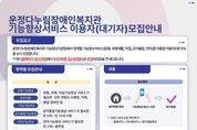 [경기헤드라인=김홍량 기자] 파주시 운정다누림장애인복지관은 지역 내 장애인의 기능 향상과 일상생활 능력 증진을 위해 ‘기능향상서비스’참여자를 오는 23일부터 상시 모집한다. 모집 대상은 주민등록등본상 파주시에 거주하는 장애인으로, 서비스 영역별 특성에 따라 대상이 구분된다. 운동기능향상, 로봇재활, 작업기능향상 서비스는 모든 연령의 뇌병변·지체·발달장애인을 대상으로 하며, 감각통합기능향상은 2세부터 12세 아동, 언어기능 향상은 2세부터 학령기 중학생까지 신청할 수 있다. 기능향상서비스는 영역별 전문 재활 프로그램으로 구성되어 이용자의 특성과 욕구를 반영한 맞춤형 서비스를 제공한다. 주요 내용으로는 ▲운동기능향상(운동발달능력 향상 및 기능적 움직임 훈련) ▲로봇재활(보행기능 회복을 위한 맞춤형 보행훈련) ▲작업기능향상(일상생활활동 및 인지·상지 기능 훈련) ▲감각통합기능향상(감각조직화 및 적응반응 촉진) ▲언어기능향상(장애특성 및 주된 불편 증상을 고려한 의사소통 능력 향상) 등이 있다. 이용은 주 2회(회당 30분) 기준이며, 회당 9,000원~12,000원으로 서비스별 상이하다. 로봇재활은 6개월(최대 1년