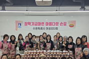 [경기헤드라인=문수철 기자] 수원시여성리더회가 5일 행궁동 어울림센터 공용주방에서 ‘장학기금 마련 젓갈 포장 행사’를 열었다. 김미애 수원시여성리더회 총회장과 이지영 수원시여성단체협의회 명예회장 등 회원 20여 명이 참여해 명란젓과 낙지젓 등 4종의 젓갈을 소포장해 판매했다. 수익금은 장학금으로 기부할 예정이다. 김미애 총회장은 “장학기금 마련에 동참해 주신 모든 분께 감사드린다”며 “이번 행사가 학생들의 미래를 응원하는, 작은 힘이 되길 바란다”고 말했다. ‘수원시 여성지도자대학’ 수료생으로 구성된 수원시여성리더회는 2004년 출범 이후 한부모가정 지원, 저소득 중·고등학생 장학금 후원, 복지관 중식 봉사, 소외계층 김장 봉사, 헌혈 캠페인 등 지역사회를 위한 나눔·봉사 활동을 꾸준히 하고 있다.