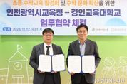 [경기헤드라인=문수철 기자] 인천광역시교육청은 12일 초등 수학교육 활성화와 수학 문화 확산을 위해 경인교육대학교와 업무협약을 체결했다고 밝혔다. 이번 협약에는 ▲‘쉬운 수학, 즐거운 수학’ 교구·교재 보완자료 개발 자문 ▲수학교육 문화 확산을 위한 학교 지원 프로그램 운영 협력 ▲ 수학교육 관련 학술교류 및 공동 연구 추진 ▲초등교원의 수학교육 전문성 강화를 위한 연수 지원 등이 포함됐다. 시교육청은 지난 6월부터 경인교육대학교 산학협력단 산하 수학교육문화연구원과 협업해 초등 3~6학년 대상 ‘이중수직선’, ‘움직이는 도형판’등 교구 2종과 교재 6종을 개발 중이며, 오는 11월 4주에 교원 희망 신청을 받아 자료 보급과 활용 워크숍을 진행할 예정이다. 인천시교육청 관계자는 “학교 현장의 의견을 반영해 초등 수학교육의 혁신적 성장과 질적 향상을 위한 협력 기반을 마련했다”며 “학생들의 수학적 탐구심과 자기주도적 학습 성장을 지원할 수 있도록 지속해서 협력하겠다”고 말했다.