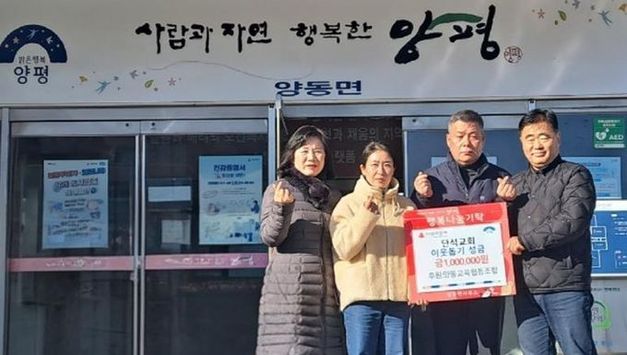 [경기헤드라인=문수철 기자] 양평군 환경사업소는 지난 26일 옥천면에 관내 취약계층 지원을 위한 이웃돕기 성금 70만 원을 기탁했다. 이번 성금은 연말을 맞아 지역사회와 상생하고 옥천면의 어려운 이웃에게 따뜻한 정을 전하고자 환경사업소 직원들이 자발적으로 참여해 십시일반 마련한 것이다. 기탁된 성금은 옥천면 내 도움이 필요한 취약계층을 위해 소중하게 사용될 예정이다. 유명호 환경사업소장은 “환경사업소가 옥천면에 위치한 기관인 만큼 지역사회와 함께 호흡하며 정을 나누는 것이 중요하다고 생각한다”며 “직원들이 한마음으로 마련한 이번 성금이 혹독한 겨울 어려움을 겪고 있는 취약계층에게 작은 위로와 희망이 되길 바란다”고 말했다. 이종길 옥천면장은 “연말을 맞아 지역의 어려운 이웃을 위해 따뜻한 나눔을 실천해 주신 환경사업소 직원분들께 진심으로 감사드린다”며 “기탁해 주신 성금이 꼭 필요한 곳에 적절히 전달될 수 있도록 최선을 다하겠다”고 전했다.