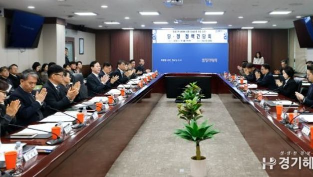 [경기헤드라인=문수철 기자] 조성대 남양주시의회 의장은 20일 남양주시의회 의장실에서 특별대책지역 수질보전정책협의회(이하 특수협)와 간담회를 개최했다. 이날 간담회는 2025년도 특수협 주요 규제개선 활동 및 2026년도 주요 업무계획에 대해 보고받고, 향후 상수원 규제 개선을 위한 주요 과제 등을 논의하기 위해 마련됐으며, 조성대 의장과 특수협 임원진 등이 참석했다. 특수협 임원진은 △주민지원사업비 삭감 관련 대응 활동 △경기연합-환경부 회의 △규제개선을 위한 주민 서명운동 전개 등 2025년도 규제 개선을 위한 주요 활동 내용을 공유하고, 2026년도 주요 업무 계획으로 △특수협 정책협의회 대면회의 추진 △하수처리시설 지원비 현실화 추진 △유관기관 주무 부서와의 업무연대 강화 등을 제시했다. 조성대 의장은 “이대로라면 남양주는 중첩규제로 인한 세수부족으로 인구가 증가할수록 자립도는 떨어질 수 밖에 없는 구조이며, 하수처리 기술 발전을 외면한 규제완화 정책 또한 여전히 답보상태에 머물러 있다”고 말했다. 이어 “이제는 더 이상 감이 떨어질 때를 기다릴 것이 아니라 7개 시군 의회와 특수협, 시민
