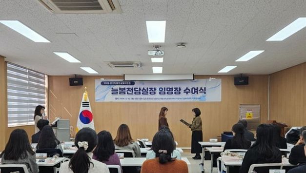 [경기헤드라인=김윤종 기자] 파주교육지원청은 2026. 2. 12. 파주교육지원청 별관 201호에서 '2026학년도 늘봄전담실장 임명장 수여식'을 개최하고, 새롭게 선발된 18명의 늘봄전담실장에게 임명장을 수여했다. 이번에 임명된 늘봄전담실장은 1인당 2개교를 겸임 발령받아 배치된 학교에서 방과후‧돌봄 업무 전반을 총괄하게 된다. 늘봄전담실장은 학교 내 방과후 및 돌봄 운영을 체계적으로 관리하고, 학생과 학부모가 안심할 수 있는 안정적인 방과후‧돌봄 환경을 조성하는 중추적인 역할을 수행한다. 특히, 방과후 프로그램 운영 관리, 관련 인력 협업 등 학교 현장에서 방과후‧돌봄 관련 실질적인 운영 지원을 담당하며, 학교별 특성과 여건을 반영한 맞춤형 프로그램 운영 체계를 구축해 나갈 예정이다. 1인 2교 겸임 체제를 통해 학교 간 운영 경험을 공유하며 방과후・돌봄 실무인력의 업무 효율성을 높이는 효과도 기대된다. 전선아 교육장은 “늘봄전담실장은 학교 현장에서 방과후‧돌봄이 원활하게 운영될 수 있도록 중심 역할을 담당하는 중요한 직책”이라며, “학생과 학부모가 신뢰할 수 있는 질 높은 프로그램 제공을 위해 적극적으로