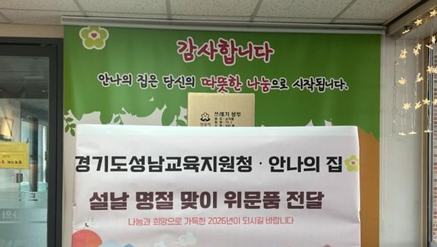 [경기헤드라인=문수철 기자] 경기도성남교육지원청(교육장 한양수)은 민족고유 명절인 설날을 앞두고 2월 12일 성남 관내‘안나의 집’을 방문하여 시설 관계자들과 이용자들에게 명절 인사를 나누며 기관에서 필요한 위문품을 전달했다. 경기도성남교육지원청은 어려운 이웃과 함께하는 따뜻한 사회를 구현하기 위하여 매해 명절마다 사회복지시설을 방문하며 지역사회와 함께하는 교육공동체가 실현될 수 있도록 앞장서고 있다. ‘안나의 집’김하종 신부는“이번 설날 명절은 성남교육지원청 직원분들의 배려와 관심으로 더욱 따뜻하고 풍성하게 보낼 수 있게 되어 감사드린다.”면서 “지역 내 위기 청소년들에 대한 다양한 지원과 프로그램 운영을 통하여 청소년들이 따뜻한 지역사회 안에서 성장할 수 있도록 돕겠다.”고 전했다. 한편 한양수 교육장은“이번 방문을 통해 소외되는 이웃이 없이 모두가 같이 웃으며 풍족한 명절을 맞이할 수 있는 기회가 됐으면 한다.”면서 “지역사회와 함께 온정을 나누어 행복한 명절을 보낼 수 있도록 성남교육지원청이 계속해서 노력하겠다.”고 소감을 밝혔다.