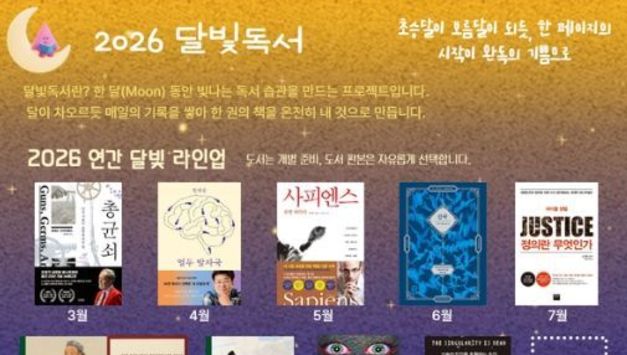 [경기헤드라인=문수철 기자] 경기도교육청평생학습관(관장 류영신)이 청소년과 성인이 함께 참여하는 독서 프로그램 ‘달빛독서’를 운영한다. 3월부터 12월까지 운영되는 ‘달빛독서’는 매월 한 권의 주제 도서를 선정해 한 달간 읽고 온라인을 통해 독서 경험과 생각을 나누는 프로그램으로 개인 중심의 독서를 넘어 소통하는 독서 문화를 확산하기 위해 마련됐다. 프로그램은 온라인 독서 인증과 의견 나눔을 중심으로 운영되며, 주제 도서와 연계한 온라인 독서 강의를 통해 책에 대한 이해를 넓히고 다양한 관점을 공유할 수 있도록 구성됐다. 월별 주제 도서는 ▲3월-총균쇠(재레드 다이아몬드) ▲4월-열두 발자국(정재승) ▲5월-사피엔스(유발 하라리) ▲6월-신곡(단테 알리기에리) ▲7월-정의란무엇인가(마이클 샌델) ▲8월-논어(공자), Tuesdays with Morrie(Mitch Albom) ▲9월-모비딕(허먼 멜빌) ▲10월-1984(조지 오웰) ▲11월-특이점이 온다(레이 커즈와일) 등으로 구성됐으며 12월에는 연말 북토크가 예정되어 있다. 참여자 모집은 주제 도서별로 진행되며 전월 20일부터 경기도교육청평생학습관 누리집을 통해 선착순으로 접수한다. 류영신 경기도교육청평