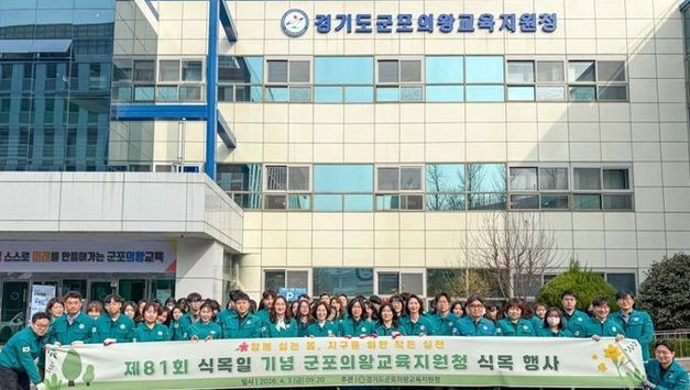 [경기헤드라인=문수철 기자] 김포교육지원청은 제81회 식목일을 맞아 4월 3일 전 직원을 대상으로 친환경 실천 캠페인 ‘TREE 운동’을 실시했다. 이번 행사는 ‘학교와 지역사회가 함께 꿈·역량·행복을 키우는 김포 미래교육’ 비전 아래, 기후위기 대응과 지속가능한 친환경 공직문화 조성을 위해 마련됐다. 특히 이번 TREE 운동은 별도의 예산을 투입하지 않고(0원), 전 직원의 자발적 참여로 운영된 점이 특징이다. ‘TREE’는 ▲Together(함께 참여) ▲Reduce(자원 절감) ▲Earth(환경 보호) ▲Eco-friendly(친환경 실천)의 의미를 담고 있다. 이날 직원들은 대중교통 이용, 차량 5부제 참여, 계단 이용, 점심시간 소등 등 일상 속 실천을 통해 탄소 배출 저감에 동참했다. 또한 청사 주변 플로깅(Plogging) 활동을 통해 환경 정화에 나서며 생활 속 친환경 실천을 이어갔다. 아울러 종이 현수막 대신 전자 현수막을 활용하는 등 불필요한 자원 사용을 줄이고, 감사팀의 ‘청렴 씨앗 심기’ 행사와 연계해 공직자의 책임성과 청렴 의식도 함께 다지는 계기를 마련했다. 한